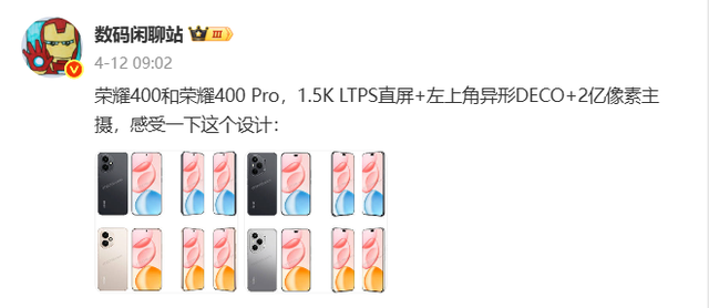 博主@数码闲聊站 此前分享了一组渲染图,展示了荣耀400、荣耀400 Pro两款手机的外观设计。